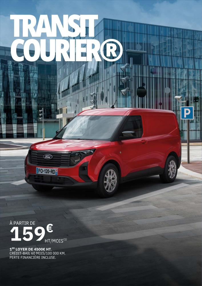 du 01/04/2026 au 30/04/2026, selon stocks disponibles, dans le réseau Ford participant. Modèle présenté : Transit Courier Fourgon Trend 1.55 EcoBlue 100ch avec options,